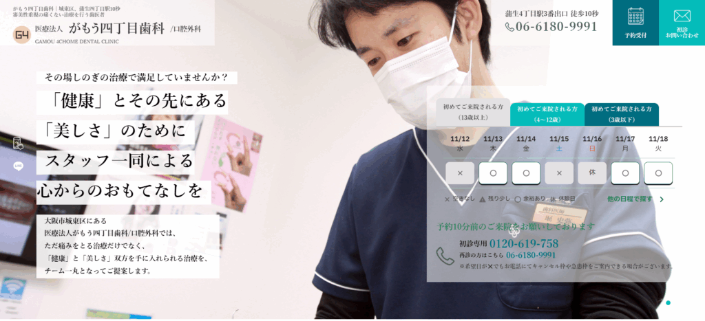 地下鉄「蒲生四丁目駅」出口から徒歩数秒という立地で、バリアフリー設計も採用されており、通勤・通院、ベビーカーや車イス利用の方にも配慮されています。 - 予防歯科と審美治療に注力