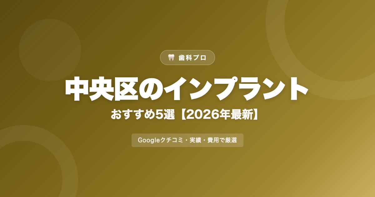 中央区でインプラント治療を検討している方のために、Googleクチコミ・実績・費用の透明性を基準に厳選した歯科医院を紹介します。インプラントは1本あたり20〜40万円と高額な治療のため、信頼できるクリニック選びが特に重要です。