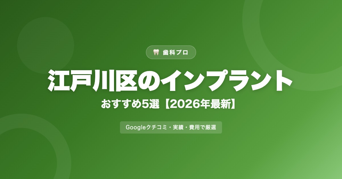 「江戸川区でインプラントを入れたいけど、どのクリニックが良いのかわからない」という方へ。本記事では江戸川区のインプラント対応歯科医院をGoogleクチコミ・料金・アクセスの観点から比較・厳選しました。費用の相場や選び方のポイントも解説します。