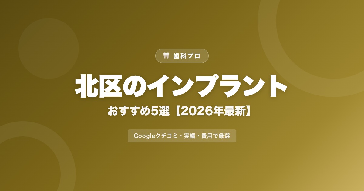 北区でインプラント治療を検討している方のために、Googleクチコミ・実績・費用の透明性を基準に厳選した歯科医院を紹介します。インプラントは1本あたり20〜40万円と高額な治療のため、信頼できるクリニック選びが特に重要です。