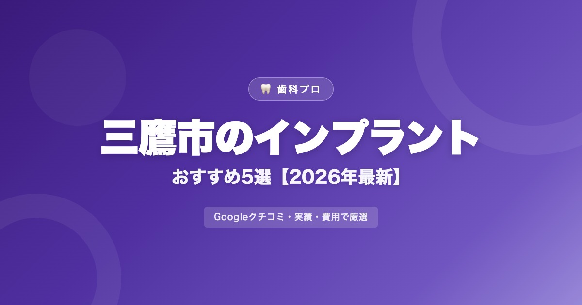 「三鷹市でインプラントを入れたいけど、どのクリニックが良いのかわからない」という方へ。本記事では三鷹市のインプラント対応歯科医院をGoogleクチコミ・料金・アクセスの観点から比較・厳選しました。費用の相場や選び方のポイントも解説します。